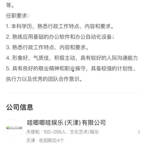 娱乐圈吃瓜专员这个岗位虽然听起来有点不可思议,但实际上却是一个充满挑战和机遇的职业。如果你对娱乐圈充满热情,具备敏锐的观察力和强大的信息搜集能力,那么这个岗位或许就是你的不二选择。快来加入这个大家庭,一起见证娱乐圈的精彩瞬间吧!